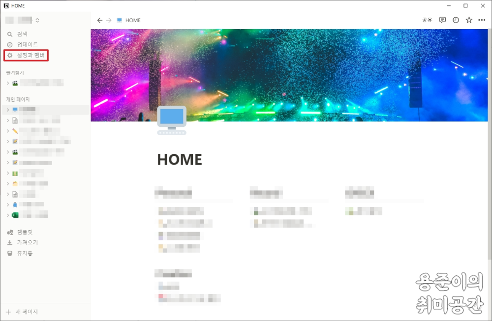 노션을 학교 계정으로 전환하기 위해서 노션에 로그인 후 좌측에 '설정과 멤버'를 클릭합니다.