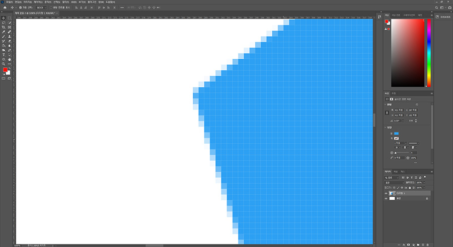 캔버스에 오각형을 그리고 확대를 해보면 위 이미지처럼 오각형이 픽셀로 이루어져 있고 각 픽셀이 정해진 위치에서 고유에 색상 정보를 가지고 있는 것을 확인할 수 있습니다.