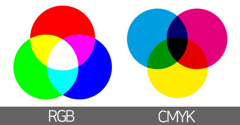다음으로 RGB와 CMYK라는 색상 모드의 차이에 대해 알아야 합니다. RGB는 우리가 알고 있는 빨강(Red), 초록(Green), 파랑(Blue) 색이 모여 색을 표현하는 방식이고 CMYK는 청록(Cyan), 자홍(Magenta), 노랑(Yellow) 3가지 색을 혼합하여 색을 만들고 완전한 검정이 존재하지 않기 때문에 별도로 검정(Black)을 추가하여 4개의 색으로 색상을 표현합니다.