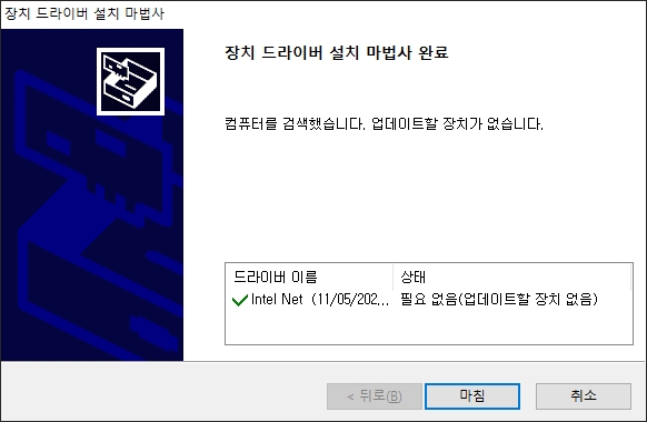 랜 카드 드라이버가 설치되어 있지 않은 경우 초록색 체크 표시가 노란색 느낌표로 표시되며 랜카드의 이름을 클릭하면 랜 카드 드라이버를 설치하는 과정으로 넘어갑니다.